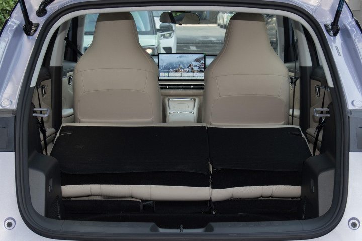 空间利用率是缤果S 2025款 430km 尊享款的一大优势。车内头部空间达1008mm,后排间距882mm,后排座椅宽度1.2米,乘坐体验宽敞不局促。以一位身高182cm的体验者为例,坐在前排驾驶位时,头部约有一拳余量,调整至合适坐姿后,后排膝部空间仍有两拳左右的距离,长途乘坐也能保持舒适。后备厢容积高达1450L,采用下沉式设计,方便取放大件物品,后排座椅支持40:60比例放倒,进一步扩展储物空间。车内还设计了25处储物巧思,例如15L中岛储物箱可收纳高跟鞋或手提包,一体式门饰板储物适合放置水瓶和手机,175mm女主角口红槽适配主流口红尺寸且具防滑设计,尤其适合注重细节的女性用户,日常通勤或短途出行都能感受到贴心的空间安排。